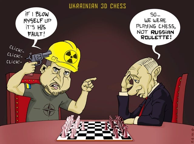 Who decided this proxy war? It won’t be a proxy war for long if we let it keep escalating like that. Who voted for this? I don’t know of any Parliament decision anywhere. The Peoples of the West didn’t vote for this. The big irresponsible brats we have for leaders are playing war games without the consent of the people they represent. meaning: it’s not even sanctioned by the rules of the countries engaged in this.